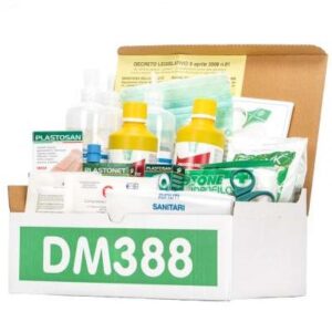 Armadietto in metallo verniciato con polvere epossidica, 1 ripiano, 2 vani, con serratura con chiave. Contenuto conforme al D.Lgs. n. 81/2008 - All. 1 D.M. 388/2003 Gruppi AB per a